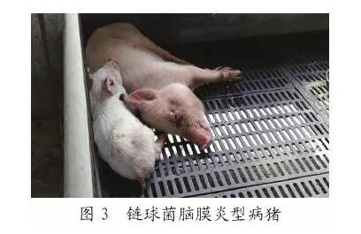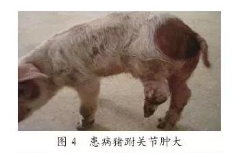 主要表現(xiàn)為多發(fā)性關(guān)節(jié)炎,患豬體溫升高,被毛粗亂,食欲不佳,逐漸消瘦。病豬眼睛潮紅,腦膜炎型時(shí)豬眼球會斜向一方(見圖3)。