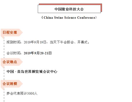 繼2015、2017年分別在廈門(mén)、重慶兩次成功舉辦中國(guó)豬業(yè)科技大會(huì),中國(guó)畜牧獸醫(yī)學(xué)會(huì)定于2019年9月19-21日,在山東省青島市召開(kāi)“第三屆中國(guó)豬業(yè)科技大會(huì)(CSSC 2019)”(以下簡(jiǎn)稱豬科會(huì)),同期舉辦“首屆中國(guó)豬業(yè)科技展(CSTE 2019)” (以下簡(jiǎn)稱科技展)。