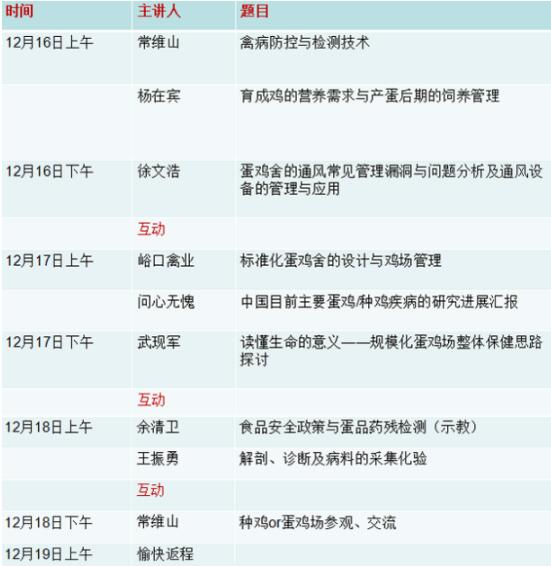 蛋價(jià)高,卻沒能把雞養(yǎng)好?眼看著白花花的銀子流失掉?通風(fēng)搞不好?設(shè)備用不好?養(yǎng)殖理念需要更新?內(nèi)容涵蓋營(yíng)養(yǎng)、管理、通風(fēng)管控、雞舍建設(shè)、疾病防控、經(jīng)營(yíng)、蛋品藥殘檢測(cè)的“雞病專業(yè)網(wǎng)【規(guī)模蛋雞養(yǎng)殖高級(jí)培訓(xùn)班】”等你來參加。課程特點(diǎn):1、內(nèi)容涵蓋面廣且精準(zhǔn),步步緊扣蛋雞生產(chǎn)急需解決的問題。2、只講干貨、互動(dòng)充分、無(wú)商業(yè)廣告。雞病專業(yè)網(wǎng)只給你最好的!