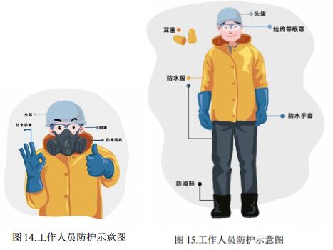 3.1 建立完善的生物安全控制制度和程序,包括動物傳染病學(xué)基本理論知識、儀器設(shè)備的操作使用規(guī)范、清洗消毒操作程序、個人防護措施(圖 14、圖 15)、質(zhì)量檢驗標(biāo)準(zhǔn)和有關(guān)注意事項等,懸掛在工作場所明顯的位置。
