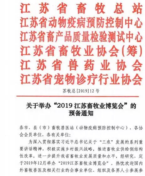 江蘇是全國農(nóng)區(qū)畜牧業(yè)大省,畜牧產(chǎn)業(yè)基礎(chǔ)雄厚,蘊含著廣闊的發(fā)展前景和市場商機。為了進一步推動江蘇省畜牧業(yè)現(xiàn)代化發(fā)展與對外交流,加大畜牧業(yè)新技術(shù)、新成果、新產(chǎn)品的宣傳推廣,為廣大生產(chǎn)商和國內(nèi)外專業(yè)人士、經(jīng)銷商、養(yǎng)殖大戶提供一次絕佳的信息交流及貿(mào)易洽談機會,并通過本次展覽會相互溝通信息、交流經(jīng)驗、加強合作、共同發(fā)展,同時,為充分發(fā)揮畜牧行業(yè)在我國農(nóng)村經(jīng)濟、農(nóng)民增收、農(nóng)業(yè)增產(chǎn)中的作用,由相關(guān)主管部門決定,擬定于2019年12月10日-12日,在南京國際會展中心舉辦“2019華東地區(qū)畜牧業(yè)博覽會暨2019第四屆江蘇畜牧業(yè)博覽會”, 屆時,將有來自全國各地的畜牧企業(yè)、養(yǎng)殖場、經(jīng)銷商、代理商及廣大養(yǎng)殖戶齊聚南京,共同打造江蘇省現(xiàn)代畜牧業(yè)博覽會這一專業(yè)盛會!
