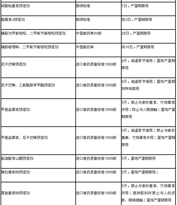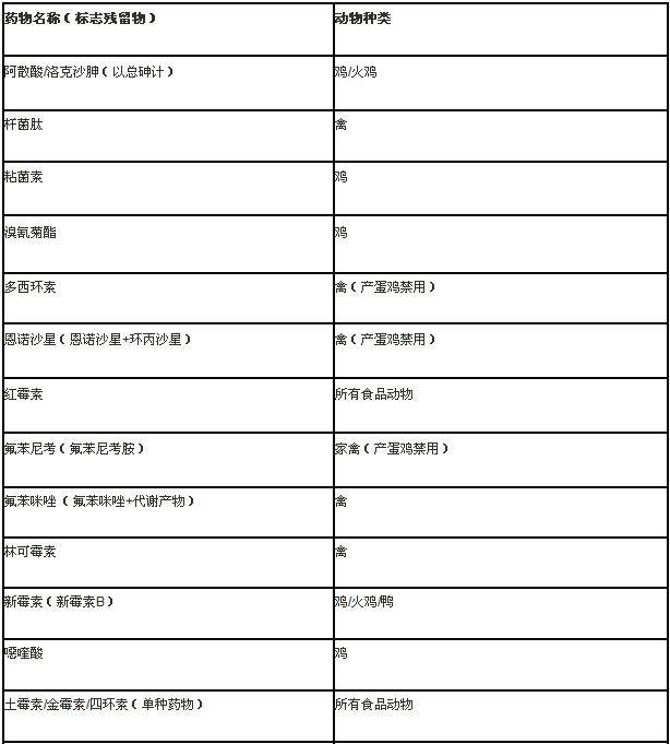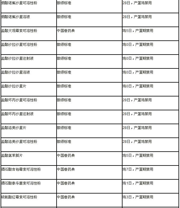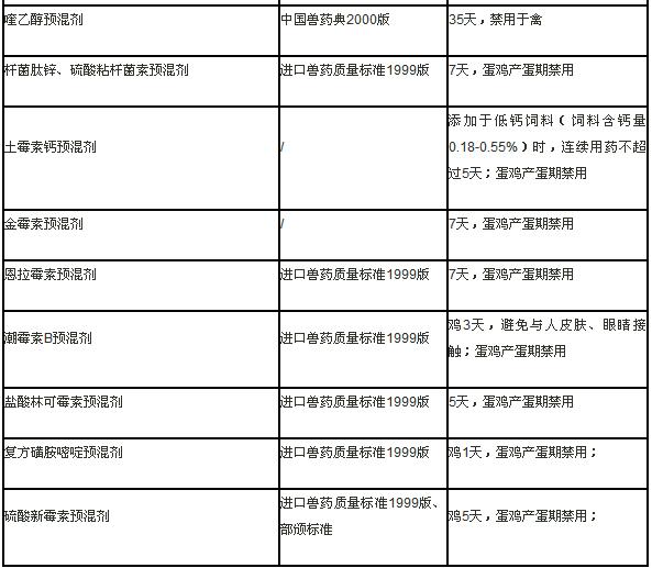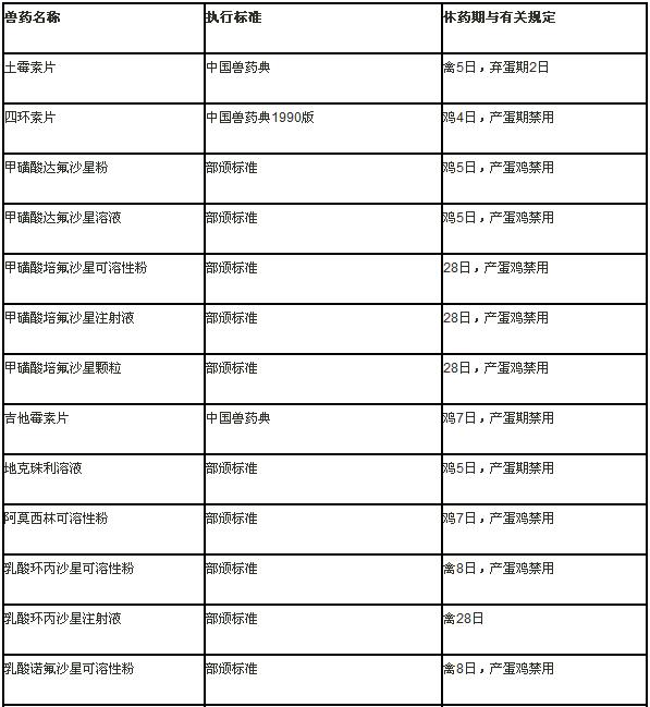(一)下列藥物允許使用(標明禁用的除外),但必須嚴格執(zhí)行質量標準、產品使用說明書及各藥物品種的休藥期規(guī)定,控制獸藥殘留量。