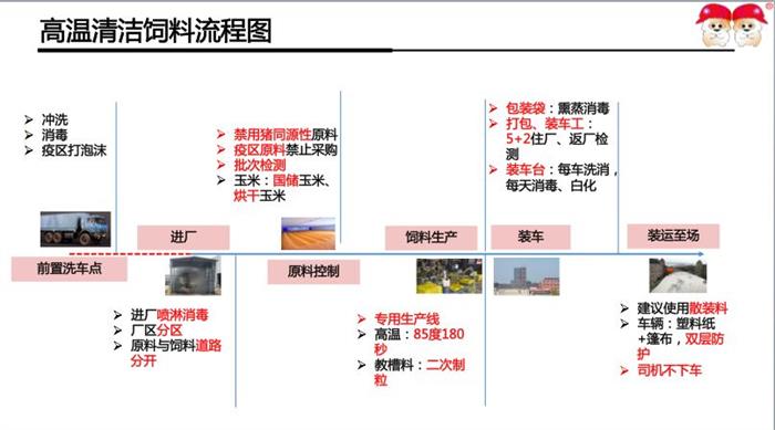 對(duì)于防控飼料傳播的危害,鮑董事長(zhǎng)認(rèn)為,繼續(xù)使用自配料、低溫料無(wú)異于引火燒身,不少地方政府在出臺(tái)防控非洲豬瘟指導(dǎo)文件中已指出,停止配料加工、添置高溫制粒設(shè)備或者全國(guó)采購(gòu)全價(jià)料,高溫制粒才是阻斷飼料傳播的最后一道防線。