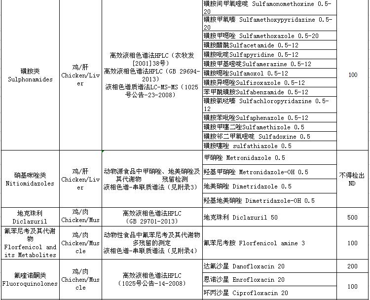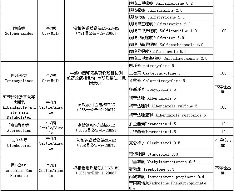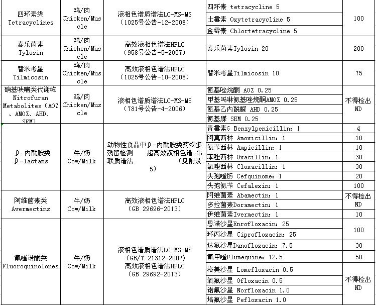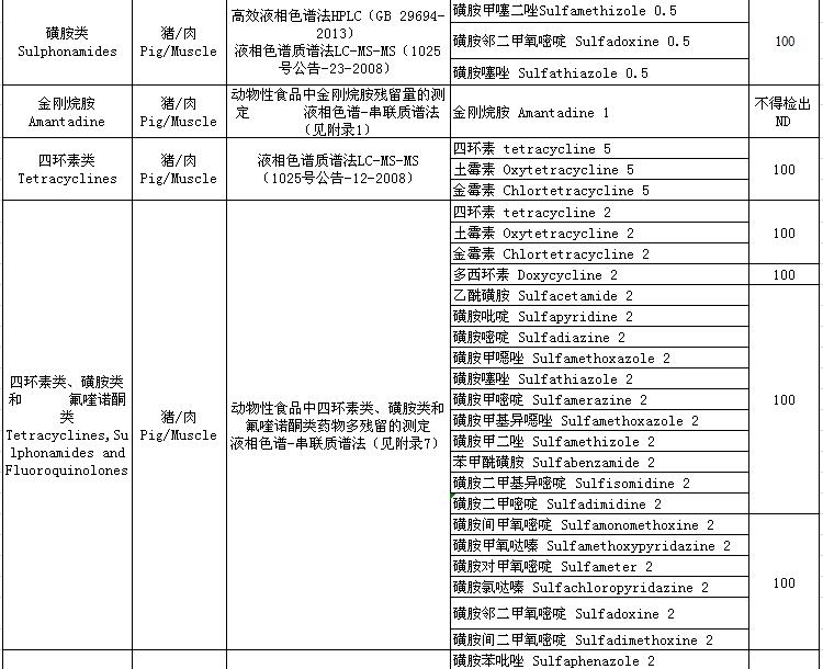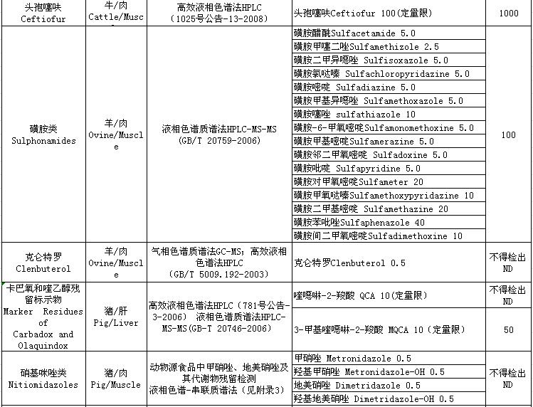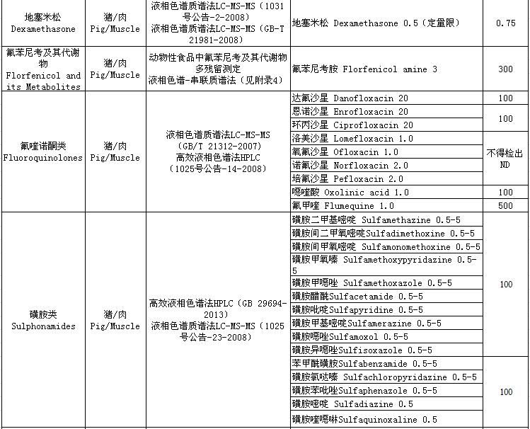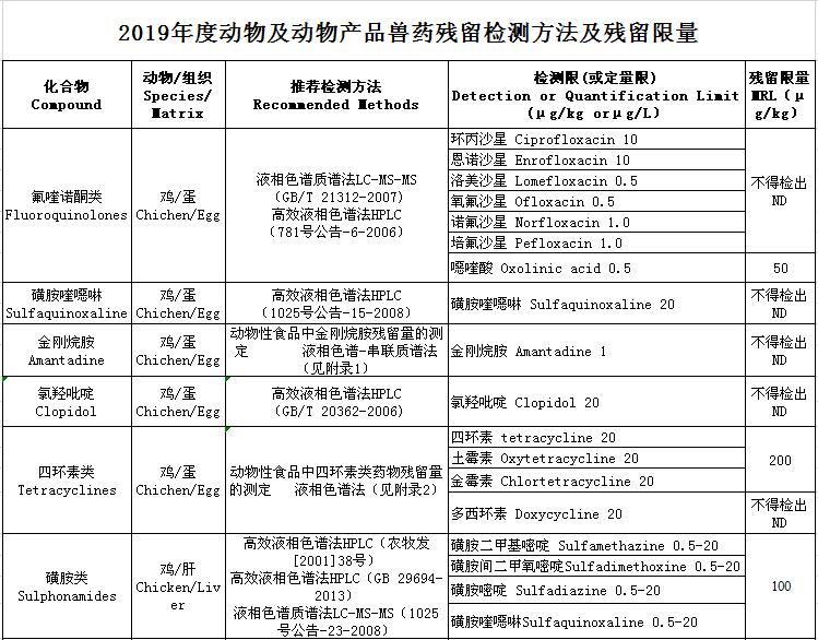 4.2019年度動(dòng)物及動(dòng)物產(chǎn)品獸藥殘留檢測(cè)方法及殘留限量