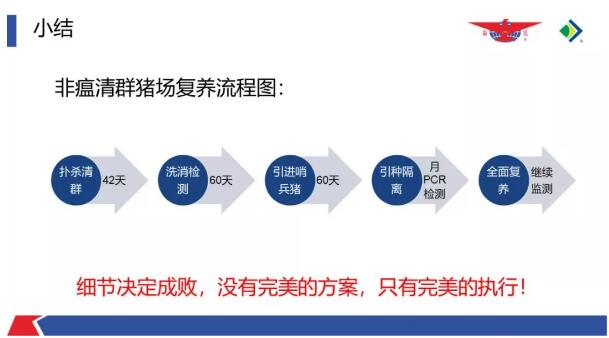 全面恢復(fù)生產(chǎn)之后,要嚴(yán)格執(zhí)行各項(xiàng)生產(chǎn)流程。只要哨兵豬兩個(gè)月不發(fā)病,你這個(gè)場復(fù)養(yǎng)是沒問題的,如果發(fā)現(xiàn)采樣之后PCR檢測為陽性的,要迅速上報(bào)并采取措施。