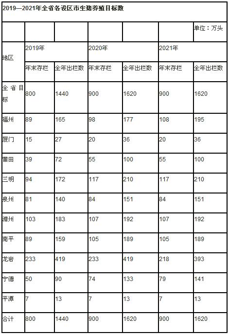附件:2019—2021年全省各設(shè)區(qū)市生豬養(yǎng)殖目標數(shù)