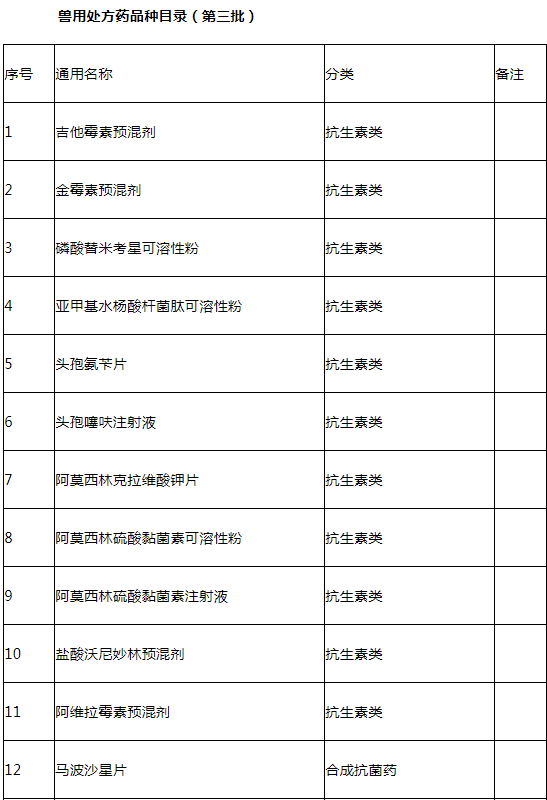 農業(yè)農村部發(fā)布《獸用處方藥品種目錄(第三批)》