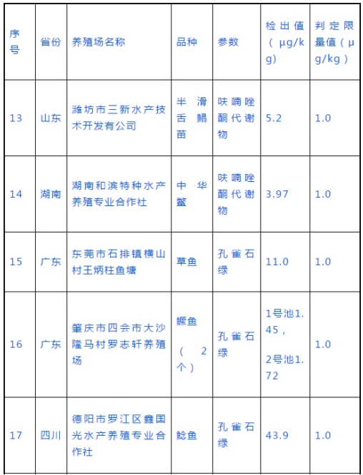 2019年國家產(chǎn)地水產(chǎn)品獸藥殘留監(jiān)控檢出不合格樣品的養(yǎng)殖場名單