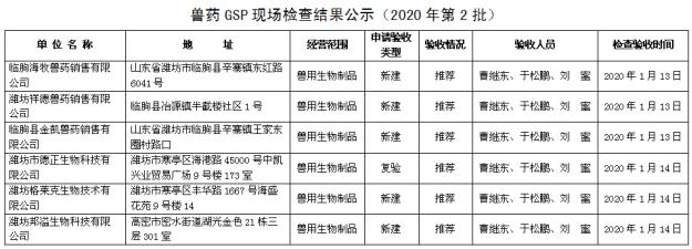 附件:獸藥GSP現(xiàn)場(chǎng)檢查結(jié)果公示(2020年第2批)