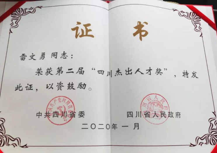 “四川杰出人才獎”是經(jīng)中央批準,以省委、省政府名義表彰的人才獎項,每3年實施一次,每次表彰不超過20名。2016年,省委、省政府評選表彰了首屆18名“四川杰出人才獎”獲得者。在很多專家人才眼中,這一獎項是四川人才的“最高榮譽”,而雷文勇是唯一一位獲此殊榮的農(nóng)牧食品企業(yè)界代表。