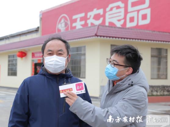 天農(nóng)公司董事長尹平安(左)在捐助現(xiàn)場接受南方農(nóng)村報(bào)記者采訪