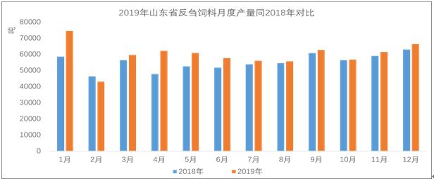 圖7 2019年山東省反芻飼料月度產(chǎn)量同2018年對比