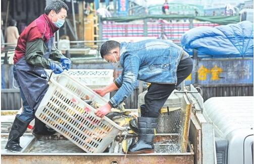錦欣市場是我市中心城區(qū)最大的綜合性水產(chǎn)批發(fā)市場,恢復(fù)運營以來,日均交易草魚、武昌魚、鯽魚、河魚等品種的淡水魚達10萬斤。荊州地處江漢平原腹地,是“四大家魚”主產(chǎn)區(qū)。疫情發(fā)生以來,鮮魚從起塘、運輸、配送等環(huán)節(jié)均面臨困難。為保障城區(qū)居民鮮魚供應(yīng),荊州有關(guān)部門出臺對策暢通鮮魚養(yǎng)殖、運輸、銷售各環(huán)節(jié)障礙,確保荊州本地及武漢市民的鮮魚供應(yīng)。