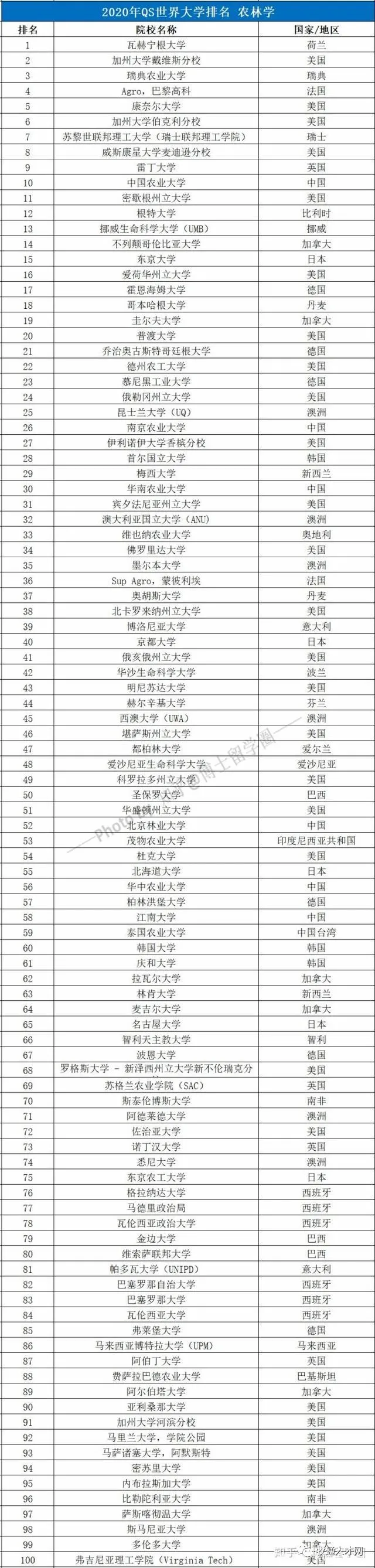 今年發(fā)布的《2020年QS世界大學(xué)學(xué)科排名》榜單中,共有401所頂尖的農(nóng)林學(xué)高等教育院校,前100強的榜單中,美國是入榜最多的國家,共計28所排名前一百位置,3所進入了進入了世界前十。
