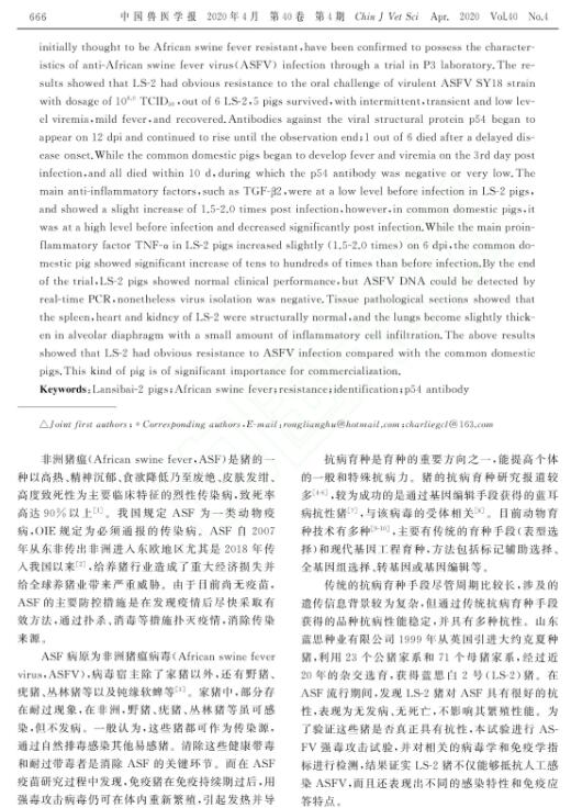 軍事獸醫(yī)研究所等單位對(duì)該豬的抗非瘟特性開(kāi)展了科學(xué)研究,證實(shí)該品種豬的非瘟抗性。