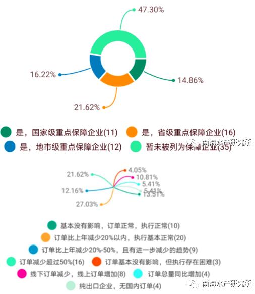 據(jù)國家水產品加工技術研發(fā)中心秘書、《調研報告》作者之一、南海所副研究員趙永強博士介紹,自新冠肺炎疫情暴發(fā)以來,國內水產品加工企業(yè)的生產、流通及銷售情況受到較大沖擊。截至3月第2周,74家企業(yè)中70家已復工,復工率達到94.6%,工人平均到崗率提高至77.3%;