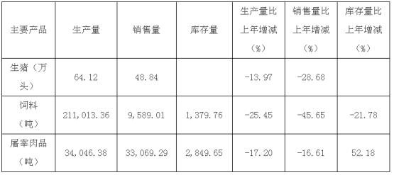 注:生豬生產(chǎn)量64.12萬(wàn)頭,其中,以活豬銷售46.56萬(wàn)頭,以肉品銷售17.56萬(wàn)頭。生豬銷售量48.84萬(wàn)頭,其中,自有活豬銷售46.56萬(wàn)頭,外購(gòu)活豬貿(mào)易銷售2.28萬(wàn)頭。