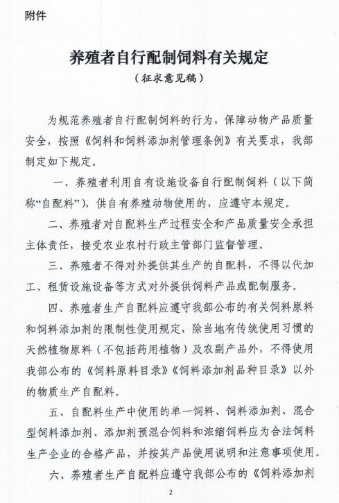 除當(dāng)?shù)赜袀鹘y(tǒng)使用習(xí)慣的天然植物原料(不包括藥用植物)及農(nóng)副產(chǎn)品外,不得使用農(nóng)業(yè)農(nóng)村部公布的《飼料原料目錄》《飼料添加劑品種目錄》以外的物質(zhì)生產(chǎn)自配料。