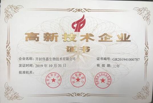 近日,河南省科技廳、河南省財政廳和河南省稅務局聯(lián)合發(fā)文公布,開封偉嘉生物技術有限公司順利通過2019年第一批河南省高新技術企業(yè)認定,成為高新技術企業(yè)。