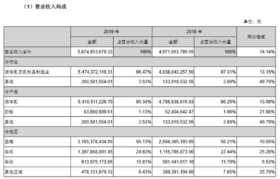 4月28日,新希望乳業(yè)發(fā)布2019年財(cái)報(bào),報(bào)告期內(nèi)公司實(shí)現(xiàn)銷量59.34萬噸,較上年同期增長7.24%;實(shí)現(xiàn)營業(yè)收入56.75億元,較上年同期增長14.14%; 實(shí)現(xiàn)歸屬于上市公司股東的凈利潤2.44億元,較上年同期增長0.41%,凈利潤增長幅度低于收入增長,主要原因:原 料奶價(jià)格上漲導(dǎo)致成本增加;為了持續(xù)提升公司品牌影響力,2019年增加了品牌和營銷方面的投入。公司通過產(chǎn)品結(jié)構(gòu)持 續(xù)優(yōu)化、管理效率提升等措施消化成本帶來的影響,實(shí)現(xiàn)收入和利潤同比增長。