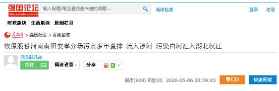 近日,有網(wǎng)友發(fā)帖稱,牧原南陽養(yǎng)殖場污水多年直排耕地河流,造成嚴重污染。