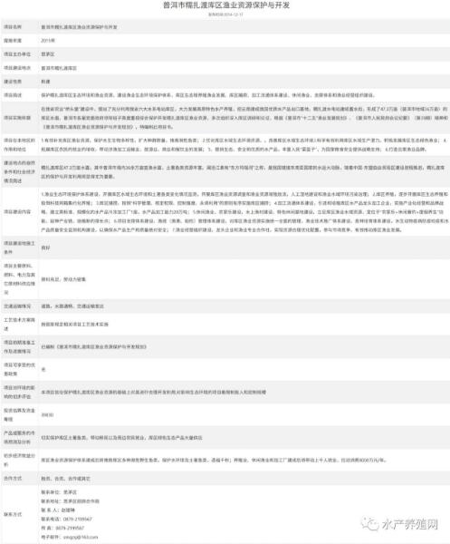 2014年12月17日發(fā)布于云南投資促進(jìn)網(wǎng)上的《普洱市糯扎渡庫(kù)區(qū)漁業(yè)資源保護(hù)與開(kāi)發(fā)》招商信息