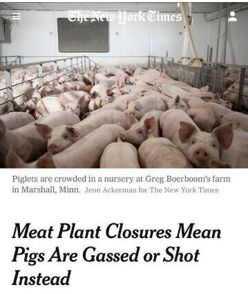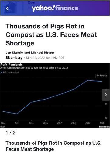 △雅虎財(cái)經(jīng)(Yahoo Finance):美國(guó)面臨肉類(lèi)短缺卻有成千上萬(wàn)頭豬在堆肥中腐爛。