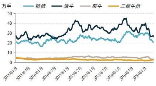 美國(guó)芝加哥商品交易所除瘦肉豬期貨外,還有活牛、菜牛、三級(jí)牛奶等畜類(lèi)期貨品種,從各品種持倉(cāng)水平來(lái)看,瘦肉豬期貨總持倉(cāng)長(zhǎng)期在20萬(wàn)手以上,屬于較為活躍的期貨品種。