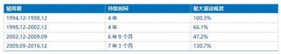 圖9:美國(guó)豬周期持續(xù)時(shí)間及價(jià)格波幅