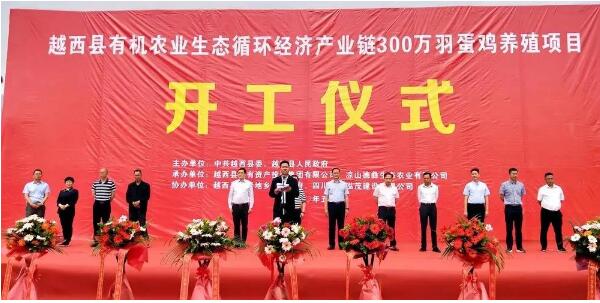 5月20日,越西縣有機農(nóng)業(yè)生態(tài)循環(huán)經(jīng)濟(jì)產(chǎn)業(yè)鏈300萬羽蛋雞養(yǎng)殖項目正式開工建設(shè)。開工儀式上,向貴瑜宣布越西縣有機農(nóng)業(yè)生態(tài)循環(huán)經(jīng)濟(jì)產(chǎn)業(yè)鏈300萬羽蛋雞養(yǎng)殖項目正式開工。