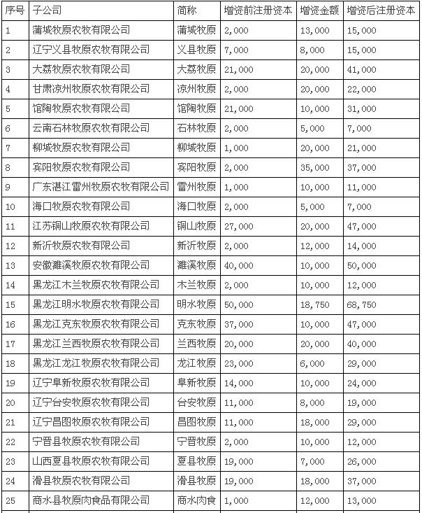 公司以自有資金對明水牧原增資人民幣3,750萬元,明水牧原的另一股東南陽市牧原生豬供應(yīng)保障有限公司以自有資金人民幣15,000萬元進(jìn)行同比例增資,總計對明水牧原增資18,750萬元。