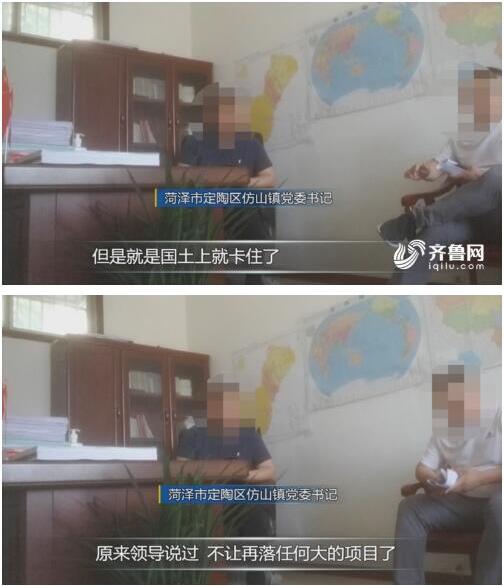 如今,21畝地每年的租金高達數(shù)萬元。項目遲遲不能開工,這讓王先生非常著急。6月3號,記者和王先生一起找到了菏澤市定陶區(qū)仿山鎮(zhèn)政府。菏澤市定陶區(qū)仿山鎮(zhèn)黨委書記告訴王先生,這塊地被國土部門卡住了。