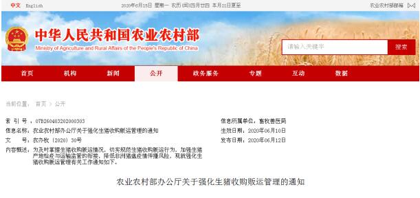 為及時掌握生豬收購販運情況,切實規(guī)范生豬收購販運行為,加強生豬產(chǎn)地檢疫與運輸監(jiān)管的銜接,降低非洲豬瘟疫情傳播風險,現(xiàn)就強化生豬收購販運管理有關工作通知如下。