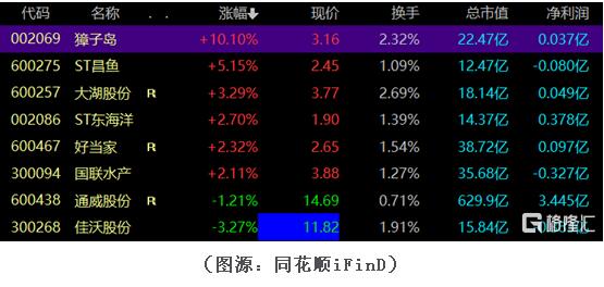 其他概念股方面,太湖股份及國聯(lián)水產(chǎn)分別漲3.29%及2.11%,ST昌魚及好當(dāng)家暫漲5.15%及2.32%。