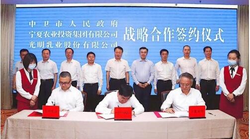 未來,光明乳業(yè)將與中衛(wèi)市、寧夏農(nóng)投優(yōu)勢互補,在寧夏建設世界級優(yōu)質(zhì)高端奶牛基地、育種基地、優(yōu)質(zhì)飼草種植基地,將光明乳業(yè)特色的牧場托管服務、領(lǐng)先的基因篩查服務全面引入,合資建設規(guī)?;膛?,提升當?shù)啬撩耩B(yǎng)牛水平,帶動當?shù)鼐蜆I(yè),助力實現(xiàn)脫貧,加快發(fā)展特色優(yōu)質(zhì)的奶業(yè),通過產(chǎn)業(yè)振興帶動鄉(xiāng)村振興,實現(xiàn)可持續(xù)發(fā)展。