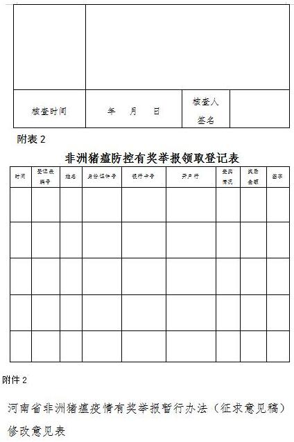附件2:河南省非洲豬瘟疫情有獎(jiǎng)舉報(bào)暫行辦法(征求意見稿)修改意見表