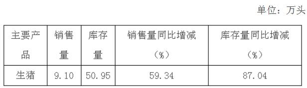 2020年1-6月,公司累計銷售生豬47.35萬頭,銷售量同比增長40.30%。