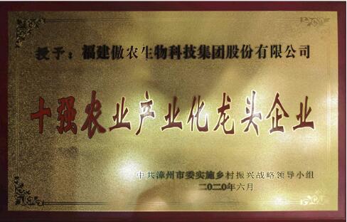 7月13日上午,漳州市現(xiàn)代農(nóng)業(yè)發(fā)展大會(huì)在漳州賓館舉行,會(huì)期舉行了“十強(qiáng)十佳”頒獎(jiǎng)儀式,福建傲農(nóng)生物科技集團(tuán)股份有限公司(以下簡(jiǎn)稱(chēng):福建傲農(nóng))以2019年?duì)I業(yè)收入57.88億元的成績(jī)斬獲漳州市“十強(qiáng)農(nóng)業(yè)產(chǎn)業(yè)化龍頭企業(yè)”稱(chēng)號(hào)。