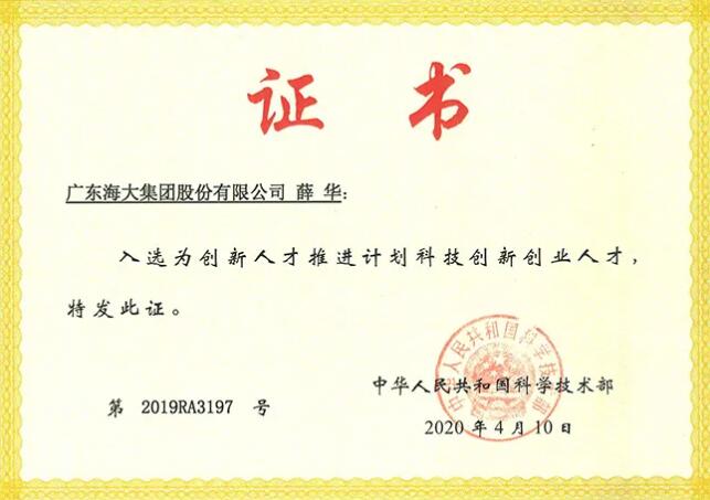 2019年創(chuàng)新人才推進(jìn)計(jì)劃入選證書