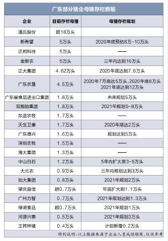 以下為部分豬企目前在廣東的母豬存欄情況: