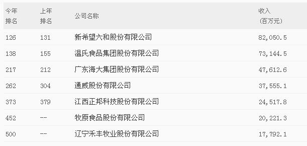 2020財(cái)富500強(qiáng)農(nóng)牧業(yè)榜單