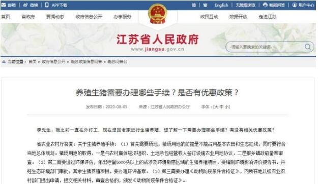 省農(nóng)業(yè)農(nóng)村廳答復(fù):關(guān)于生豬養(yǎng)殖手續(xù):(1)首先需要場(chǎng)地,豬場(chǎng)用地的前提是不能占用基本農(nóng)田和生態(tài)紅線,同時(shí)要符合當(dāng)?shù)乜傮w規(guī)劃。豬場(chǎng)用地的取得,一是與農(nóng)村集體經(jīng)濟(jì)組織、土地承包經(jīng)營(yíng)權(quán)人簽訂設(shè)施農(nóng)業(yè)用地協(xié)議,二是報(bào)鄉(xiāng)鎮(zhèn)政府備案審查。(2)第二需要通過(guò)環(huán)保評(píng)估,年出欄量5000頭以上的或涉及環(huán)境敏感區(qū)域的生豬養(yǎng)殖項(xiàng)目,要編制環(huán)境影響評(píng)價(jià)報(bào)告書(shū),并經(jīng)生態(tài)環(huán)境部門(mén)審批;其余生豬養(yǎng)殖項(xiàng)目,要辦理環(huán)評(píng)備案。(3)第三需要辦理《動(dòng)物防疫條件合格證》,向所在地縣級(jí)農(nóng)業(yè)農(nóng)村部門(mén)提出申請(qǐng),提交相關(guān)材料,審查合格的,頒發(fā)《動(dòng)物防疫條件合格證》。
