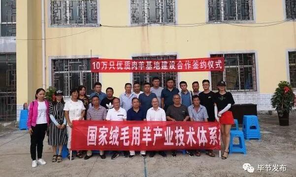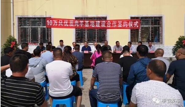 簽約現(xiàn)場(chǎng),畢節(jié)市農(nóng)業(yè)農(nóng)村局、畢節(jié)市牛羊?qū)0唷⒑照驴h農(nóng)業(yè)農(nóng)村局、赫章縣興發(fā)鄉(xiāng)、畢節(jié)市肉牛產(chǎn)業(yè)協(xié)會(huì)等相關(guān)負(fù)責(zé)人聽取了兩個(gè)公司接下來的合作模式及運(yùn)作模式介紹,見證了合作雙方簽訂協(xié)議,并從羊產(chǎn)業(yè)鏈發(fā)展的前端、中端和后端提出了許多寶貴的建議,希望兩個(gè)公司采取“公司+合作社+養(yǎng)殖戶”的模式,帶動(dòng)當(dāng)?shù)剞r(nóng)民脫貧致富。