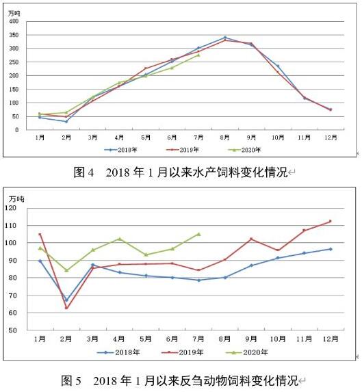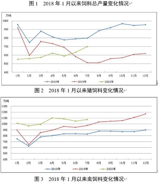 據(jù)截至8月6日已填報(bào)企業(yè)測(cè)算,2020年7月,飼料總產(chǎn)量2190萬(wàn)噸,環(huán)比增長(zhǎng)7.3%,同比增長(zhǎng)16.0%。從趨勢(shì)上看,今年3月、4月和6月、7月飼料總產(chǎn)量環(huán)比增長(zhǎng),7月環(huán)比較上月擴(kuò)大5.1個(gè)百分點(diǎn);2月以后,除3月份同比小幅下降外,其余各月份產(chǎn)量均比上年同期有所增長(zhǎng),7月飼料產(chǎn)量達(dá)近三年的高位水平,高于2017年以來(lái)的月度平均產(chǎn)量。