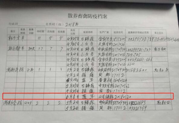 毛先生告訴澎湃新聞,同一種疫病,每年打的疫苗并不完全相同。這兩款疫苗,都是在康國(guó)來(lái)任麥嶺鎮(zhèn)動(dòng)物防疫站負(fù)責(zé)人后發(fā)放的。