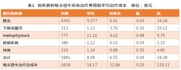 但重要的是要降低年幼犢牛胃腸道感染的患病率或流行率,因?yàn)槟暧讋?dòng)物在此階段發(fā)病時(shí),其隨后的生長(zhǎng)受到損害,進(jìn)而影響它們今后的生產(chǎn)力。康奈兒大學(xué)的研究估計(jì),與健康的犢牛相比,經(jīng)過抗生素治療的斷奶前犢牛在其第一次泌乳期少產(chǎn)奶約1100磅(500kg)。在每英擔(dān)(45.4千克)的價(jià)格16美元時(shí),每頭動(dòng)物損失176美元??的蝺捍髮W(xué)的另一項(xiàng)研究,報(bào)道了每頭犢牛的平均治療成本(僅限藥物)為18.17美元(范圍自36美分至29.12美元),而下痢的平均治療成本(僅藥物)為1.12美元(從36美分至29.12美元不等,表1)。這兩項(xiàng)研究證實(shí),犢牛疾病不但昂貴并且具有長(zhǎng)期影響。