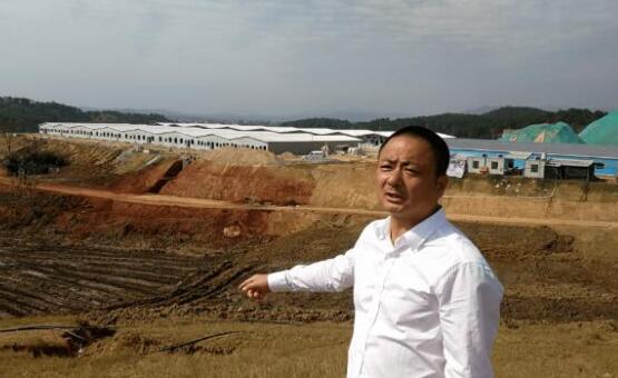 圖:武漢金龍畜牧董事長雷賢忠在講解浠水在建的10萬頭母豬基地