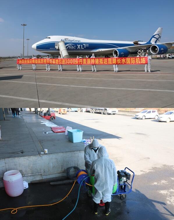 12月8日,滿載云南益民養(yǎng)殖示范基地有限公司從丹麥引進(jìn)的首批1000頭丹系曾祖代原種豬的貨運包機(jī)準(zhǔn)時抵達(dá)昆明長水國際機(jī)場,在機(jī)場海關(guān)部門嚴(yán)格監(jiān)管下,當(dāng)晚全部順利運抵羅平縣云南益民養(yǎng)殖隔離檢疫場,開始為期45天的隔離檢疫,待隔離期滿檢疫合格后即可投入生產(chǎn)。
