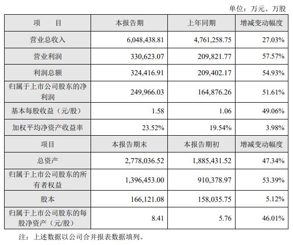 海大集團(tuán)1月15日發(fā)布2020年度業(yè)績(jī)快報(bào)。公司實(shí)現(xiàn)營(yíng)業(yè)總收入604.84億元,同比增長(zhǎng)27.03%;歸屬于上市公司股東的凈利潤(rùn)約為25億元,同比增長(zhǎng)51.61%。
