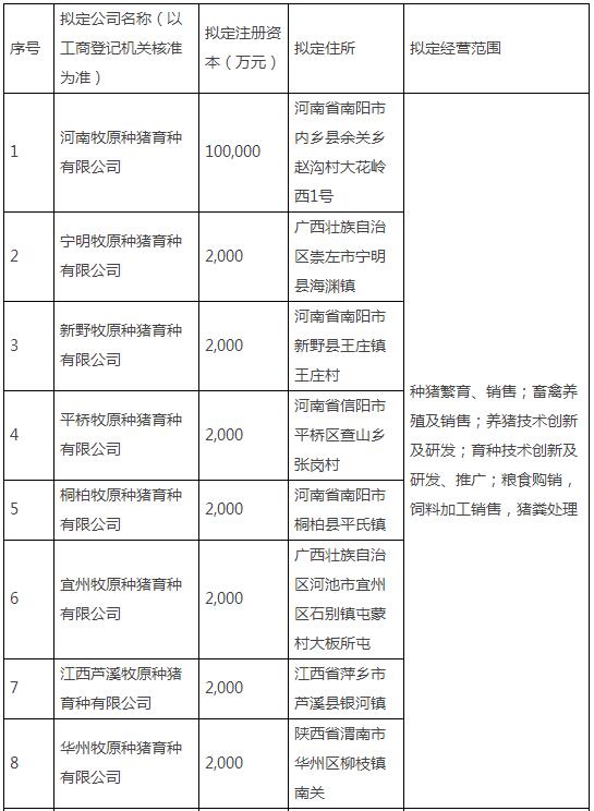公告稱,隨著公司養(yǎng)殖規(guī)模的逐步擴(kuò)大,結(jié)合公司戰(zhàn)略發(fā)展需要,公司將進(jìn)一步打造集科研、飼料加工、生豬育種、種豬擴(kuò)繁、商品豬飼養(yǎng)、生豬屠宰為一體的生豬產(chǎn)業(yè)鏈。公司在河南省南陽(yáng)市內(nèi)鄉(xiāng)縣設(shè)立子公司牧原種豬育種開(kāi)展種豬育種及生豬養(yǎng)殖業(yè)務(wù),并由牧原種豬育種出資在廣西省崇左市寧明縣、河南省信陽(yáng)市平橋區(qū)等地設(shè)立子公司開(kāi)展種豬育種及生豬養(yǎng)殖業(yè)務(wù),有利于提升公司育種水平,提升公司專業(yè)化管理水平,進(jìn)一步擴(kuò)大種豬場(chǎng)產(chǎn)能,更好地支撐公司快速發(fā)展,提高國(guó)內(nèi)養(yǎng)殖效率,獲取規(guī)模經(jīng)濟(jì)效益,實(shí)現(xiàn)全體股東的利益最大化。